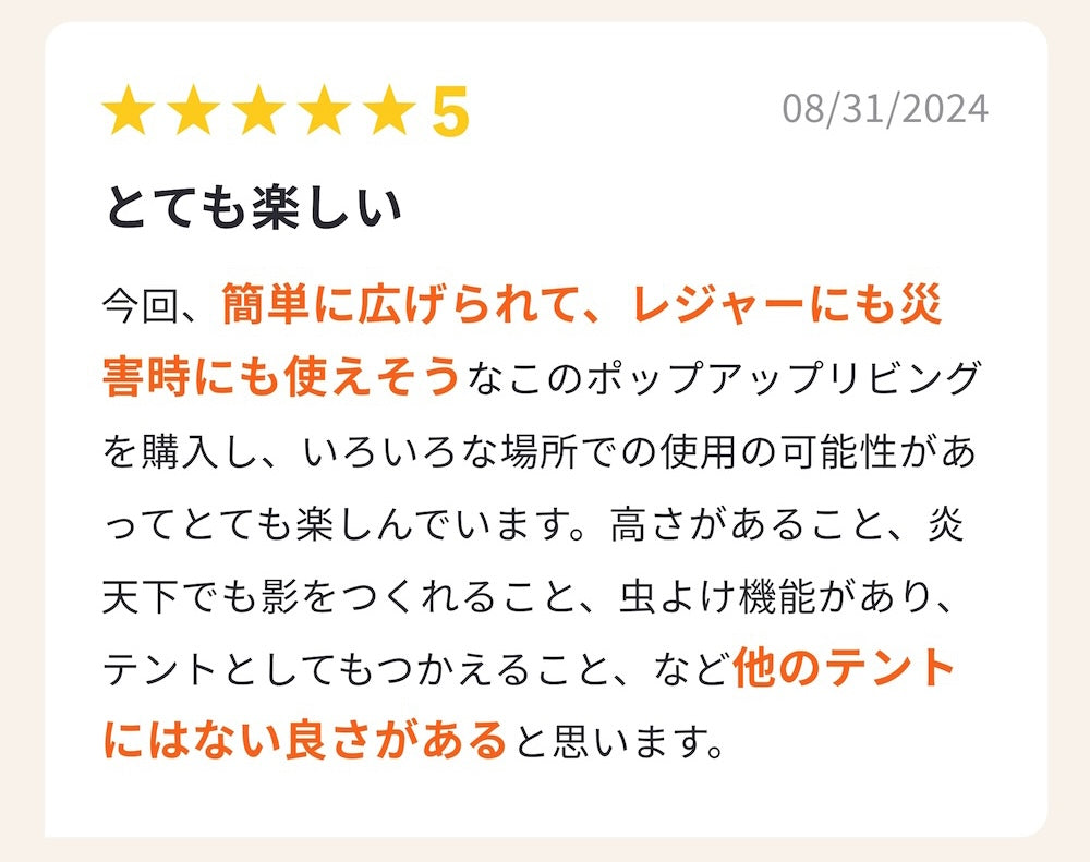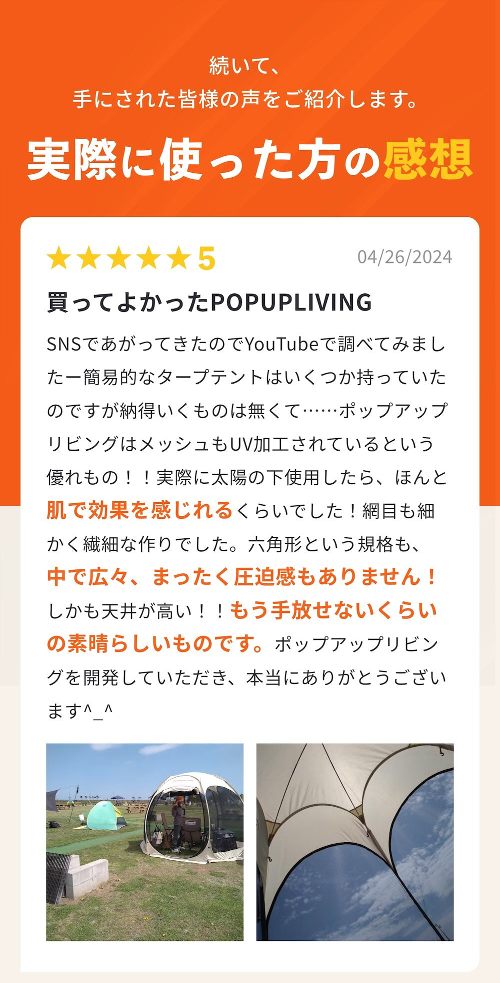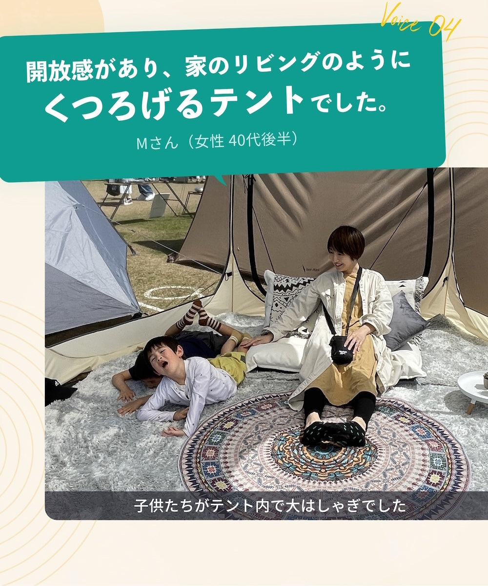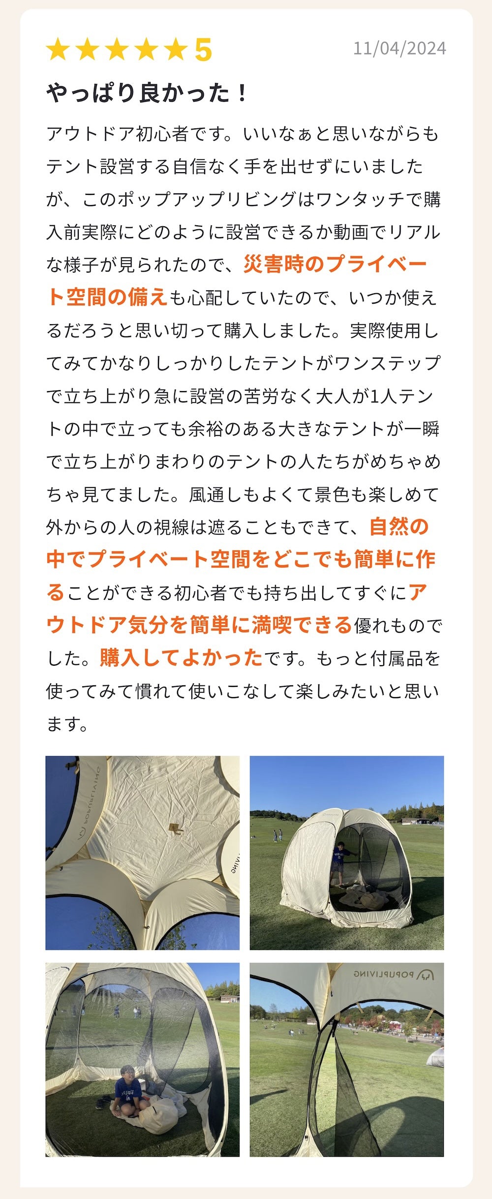 そのため、他のテントと比べて涼しく感じることができ、真夏でも快適に過ごしやすいです。