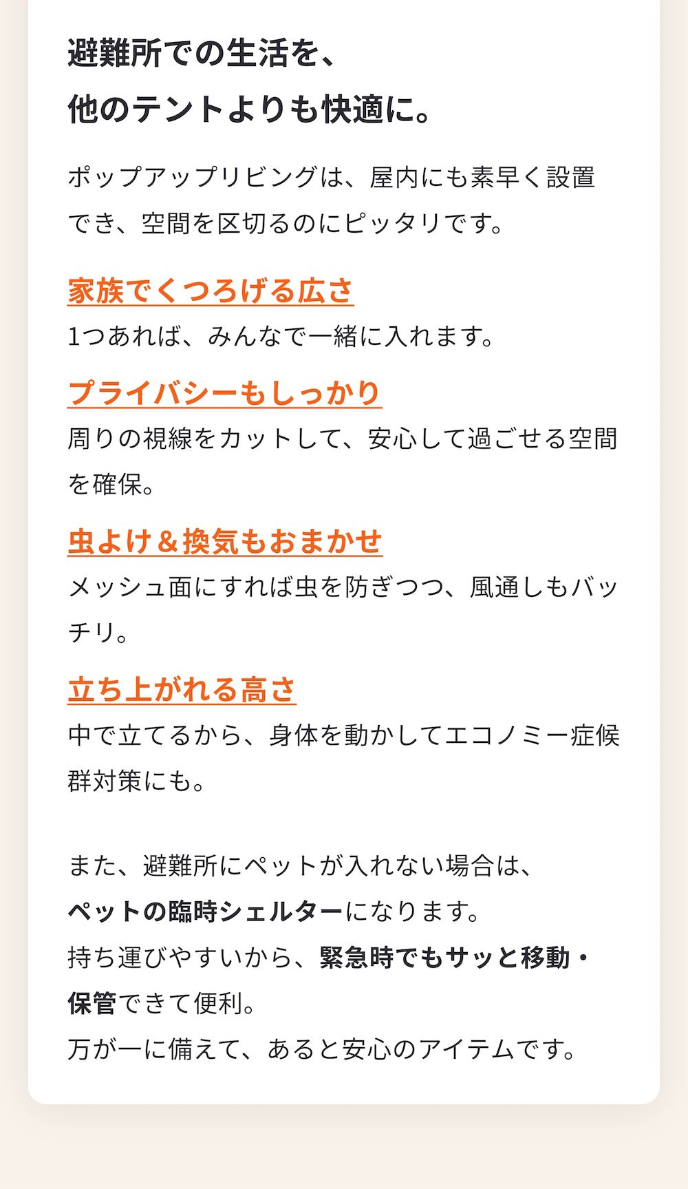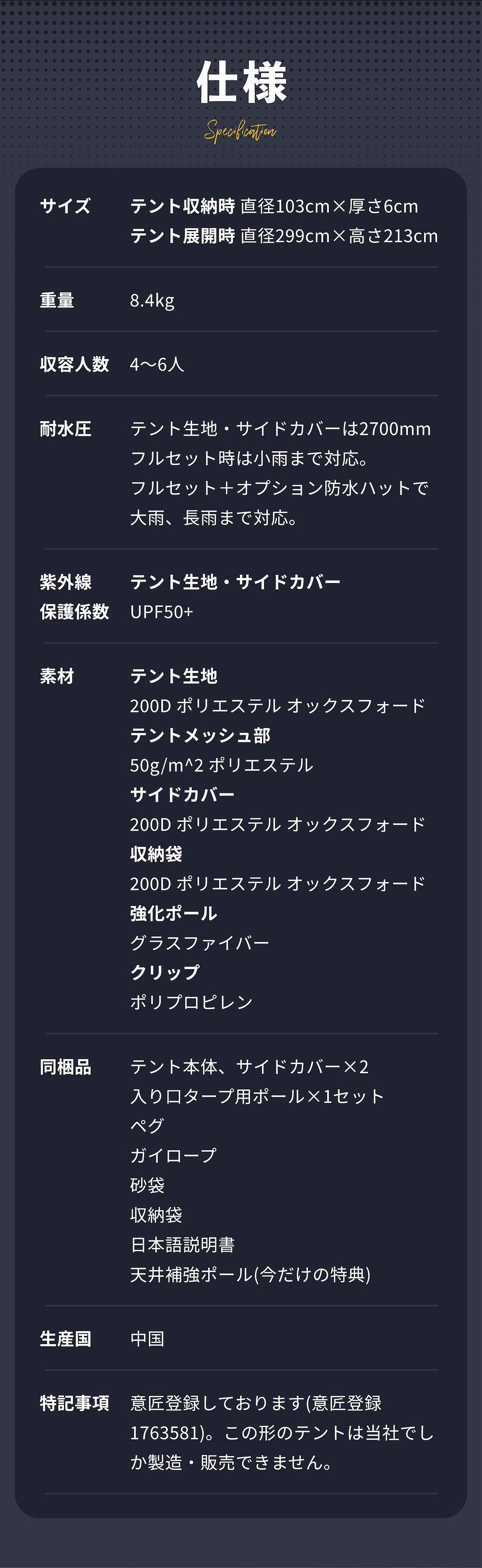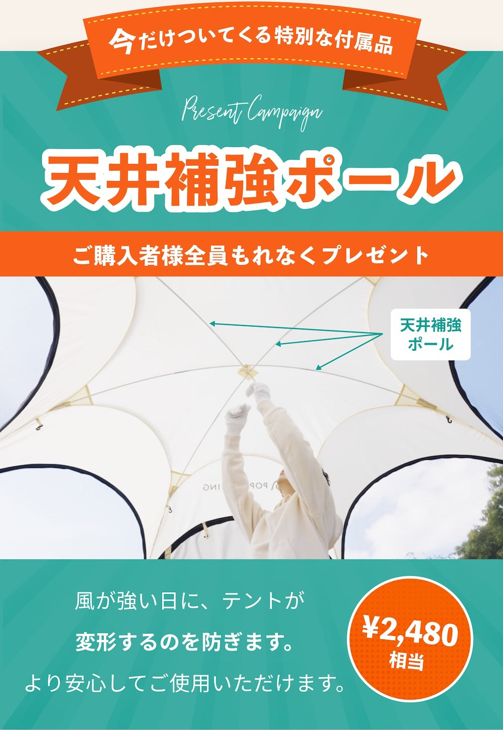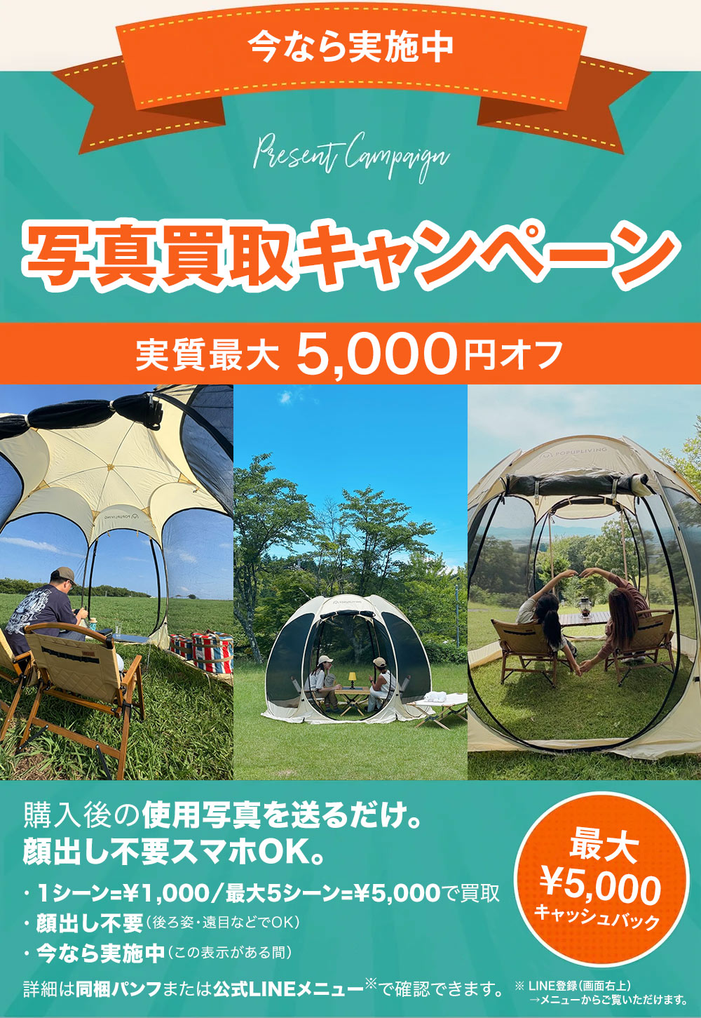 - ポップアップリビング(テント本体)が含まれていない場合は1,000円