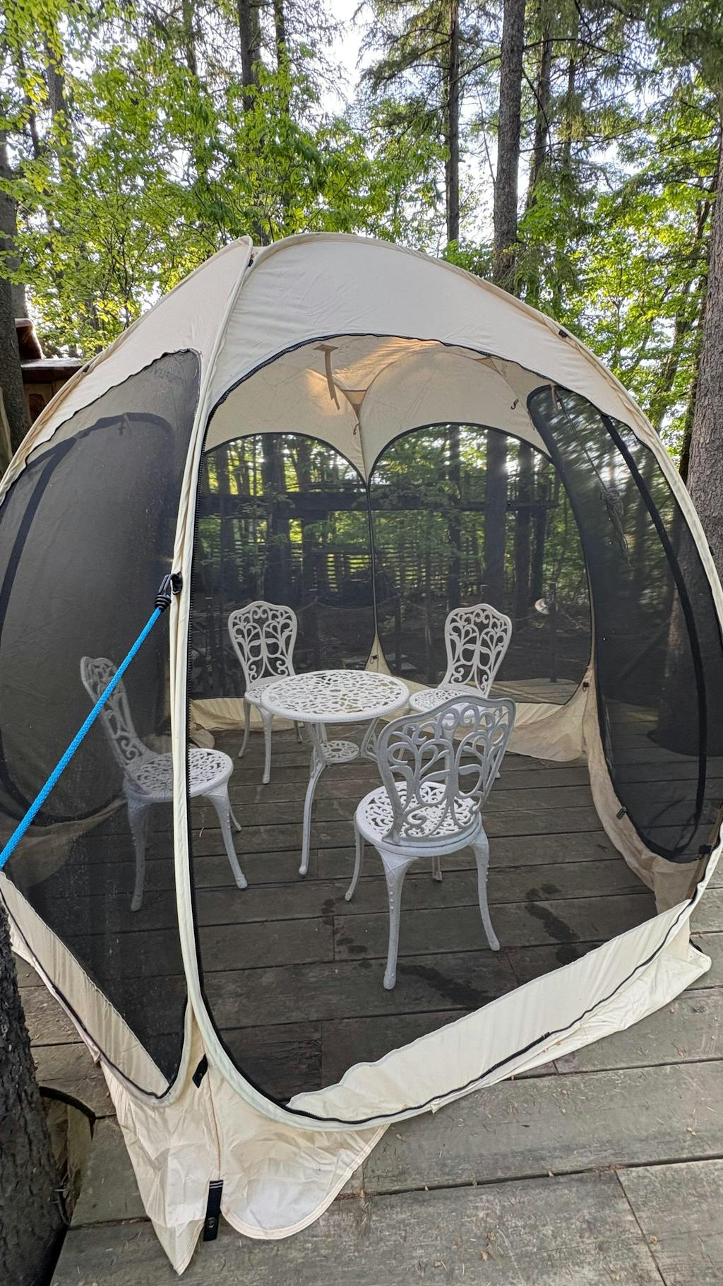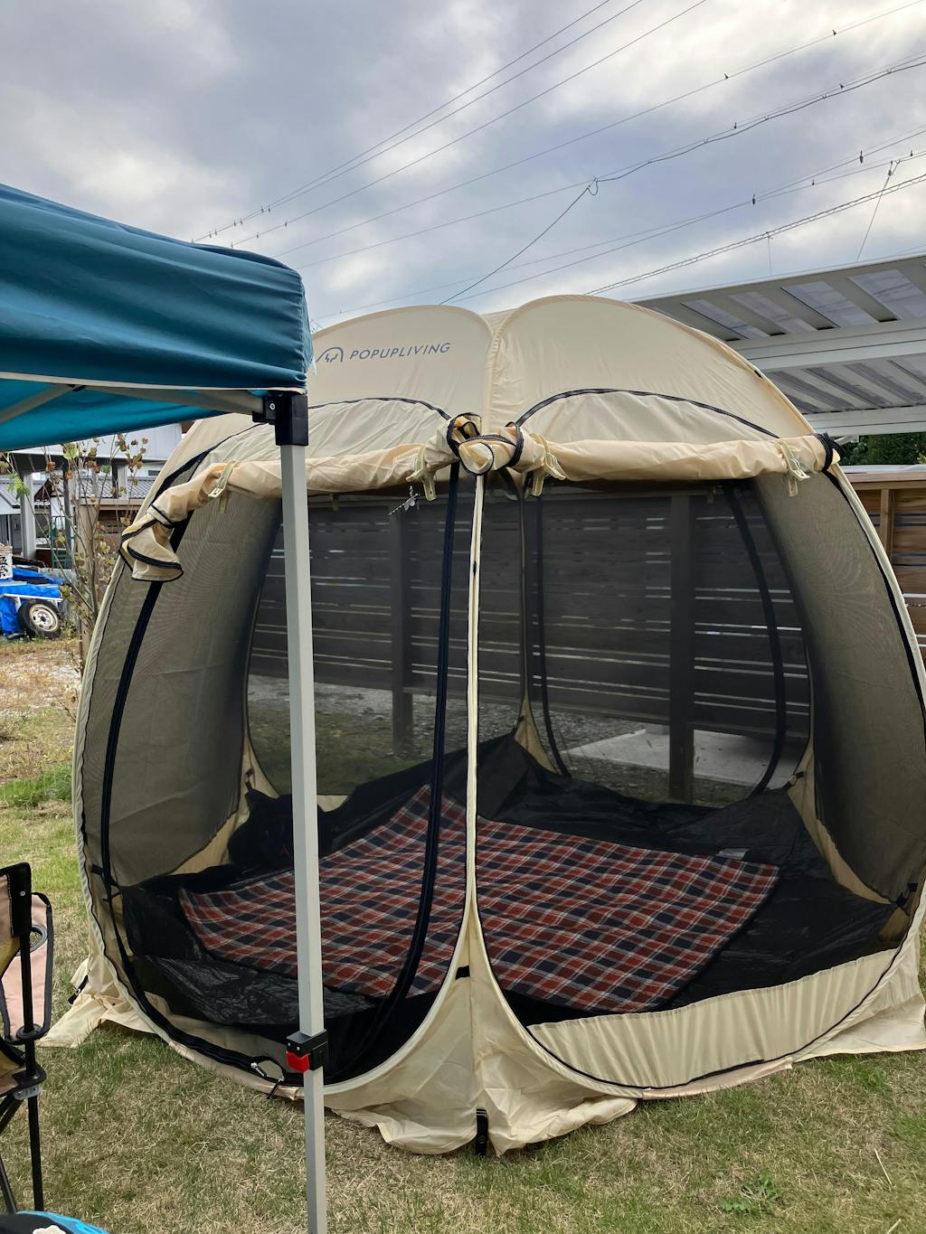 自宅のデッキに軒がないので、いつもタープを張っていたのですが、ポップアップリビングを見つけました。値段もまあまあするので悩みましたが、買って良かった!