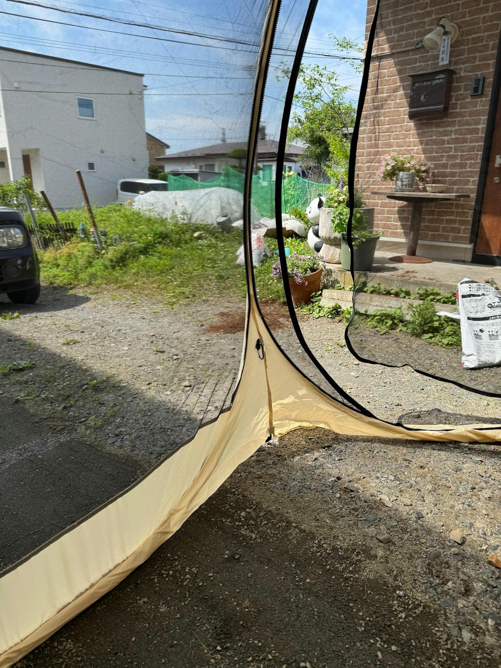 配送迅速!Line登録したら気軽に連絡も取れる。基本的に縫製が雑ではある。紐がとれていたり、チャックが閉まらなかったり、汚れていたり・・・問題が結構あったが、動画や写真付きで連絡をしたら、すぐに対応して代替品を手配してくれたので、よしとする。テントそのものは、網戸が黒のためか、外の景色が本当によくみえる。窓が大きくフレームが細いので、開放感は抜群。高さもあるので圧迫感もない。縫製が悪くサイドカバーがつけにくいのが問題ではあるが、一度つけてしまえばずっとつけたまましまえるので問題はないかなと思う。縫製のせいでうまくつけられなかった不良品のサイドカバーは交換してくれた。ブワンと開いて、クニっと折ってしまえて、ほんとうに楽ちん!簡単! ※サイドカバーを取り付けて、ぐるっとチャックを一回りして、最後の留め具部分の端が揃ってないと、チャックがたわんで最後まで閉められない。(写真あり)