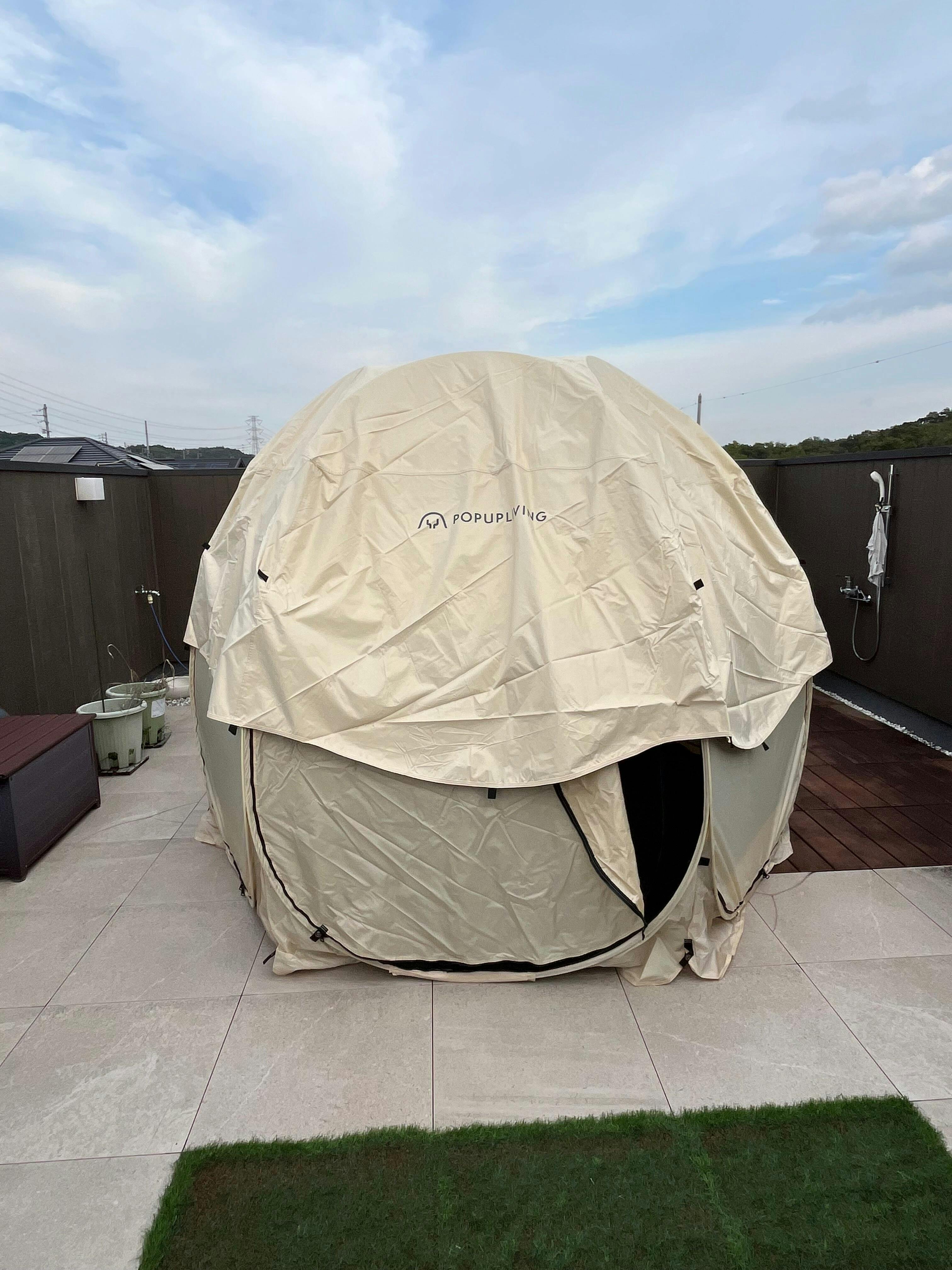 庭のプール遊びをもっと安全にするポップアップリビング。これがあれば、紫外線や虫から守ってくれるから、子どもたちはもっと快適に遊べます。日焼けや熱中症を防ぎつつ、外から子どもを見守ることもできます。